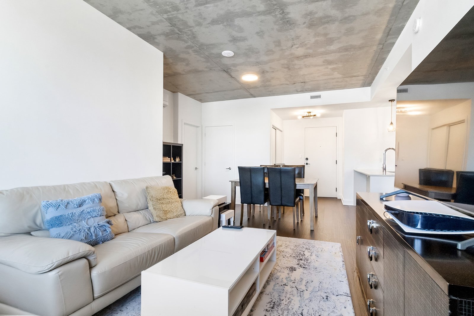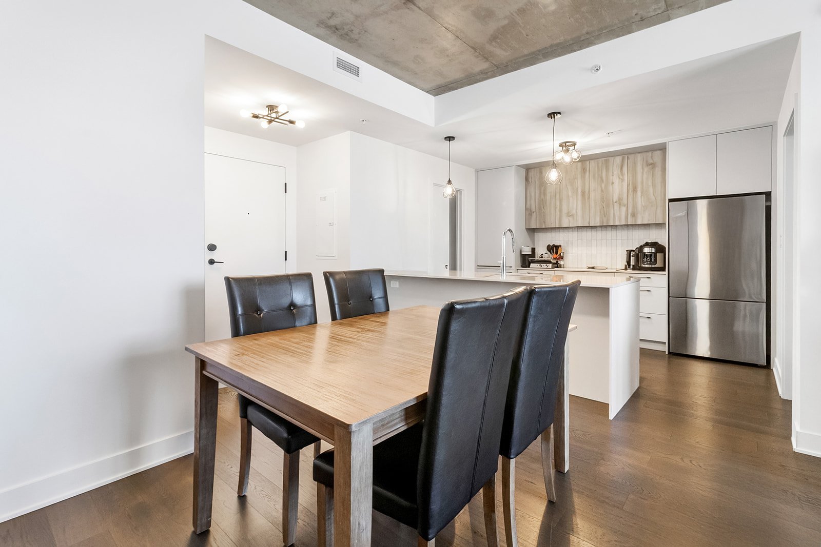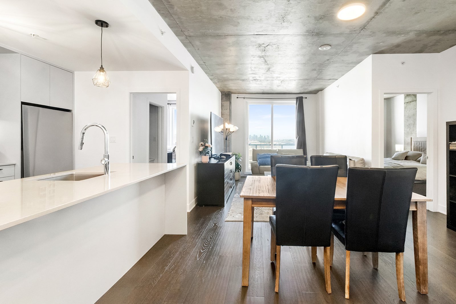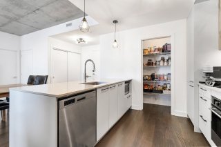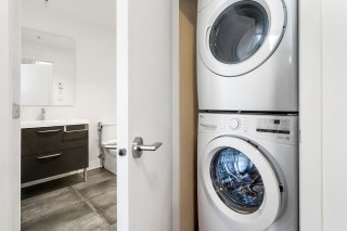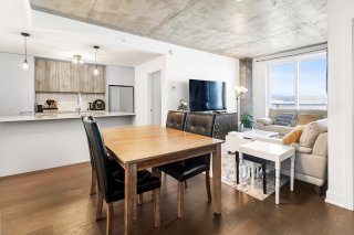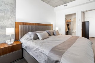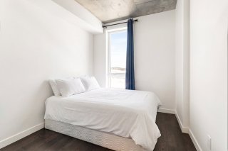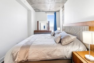 L'unité actuellement louée pour 2300$/mois, propose deux chambres à coucher spacieuses, offrant une grande flexibilité d'aménagement selon les besoins : chambres familiales, espace de télétravail ou chambre d'invités. La salle de bains complète, bien aménagée, comprend un espace de lavage séparé, ajoutant un atout appréciable pour le confort et l'organisation au quotidien.