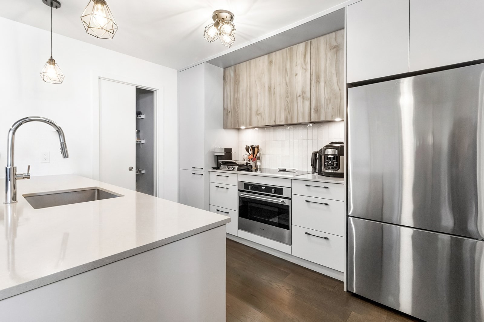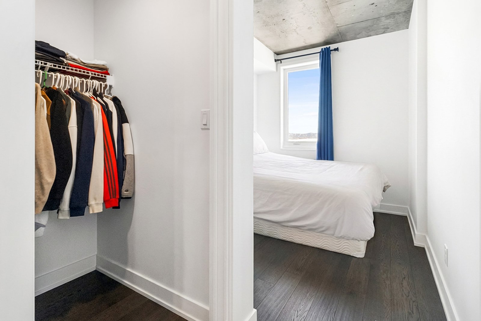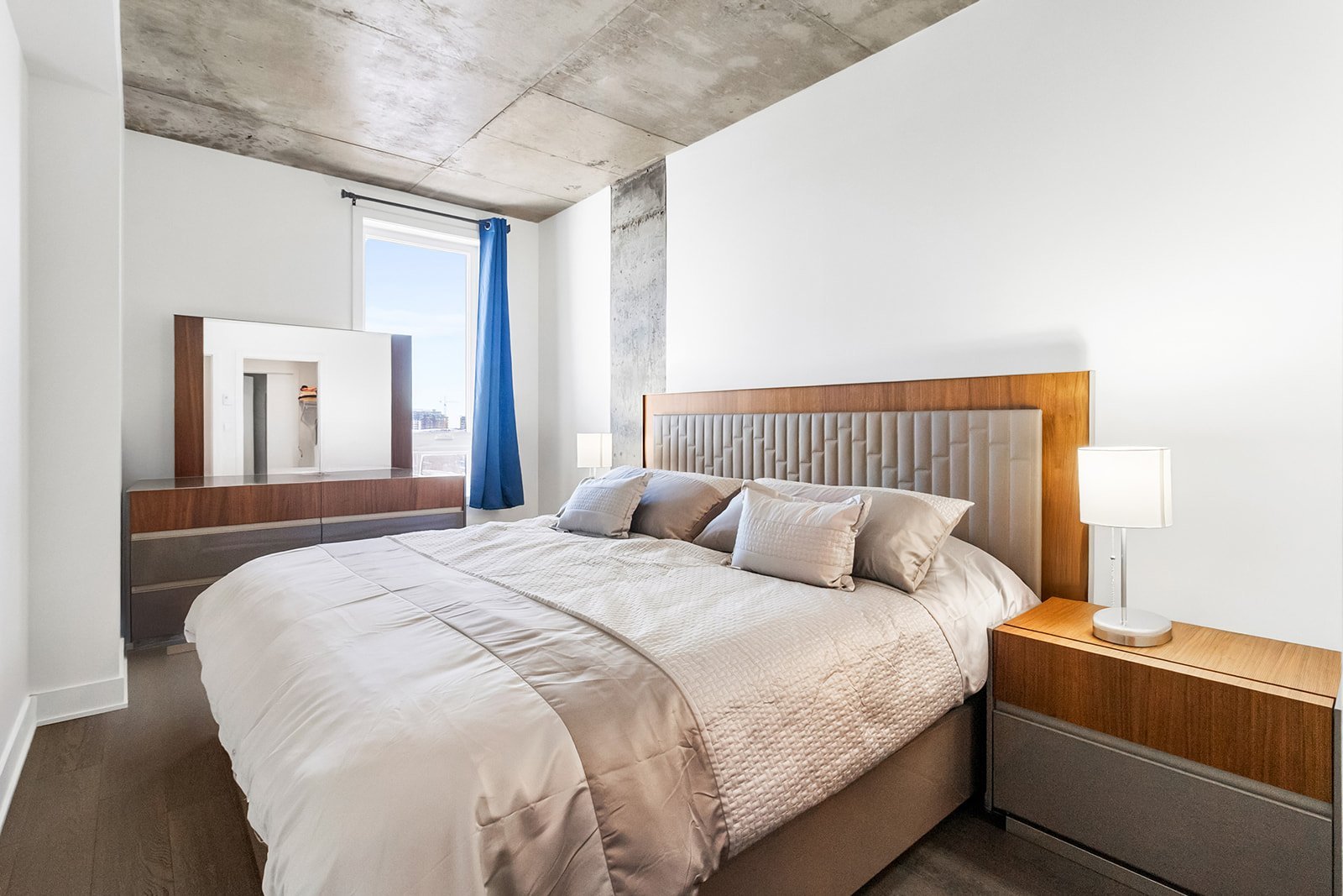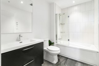 L'unité actuellement louée pour 2300$/mois, propose deux chambres à coucher spacieuses, offrant une grande flexibilité d'aménagement selon les besoins : chambres familiales, espace de télétravail ou chambre d'invités. La salle de bains complète, bien aménagée, comprend un espace de lavage séparé, ajoutant un atout appréciable pour le confort et l'organisation au quotidien.