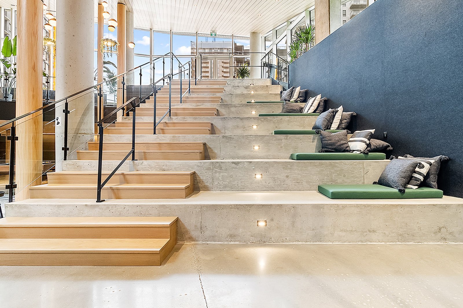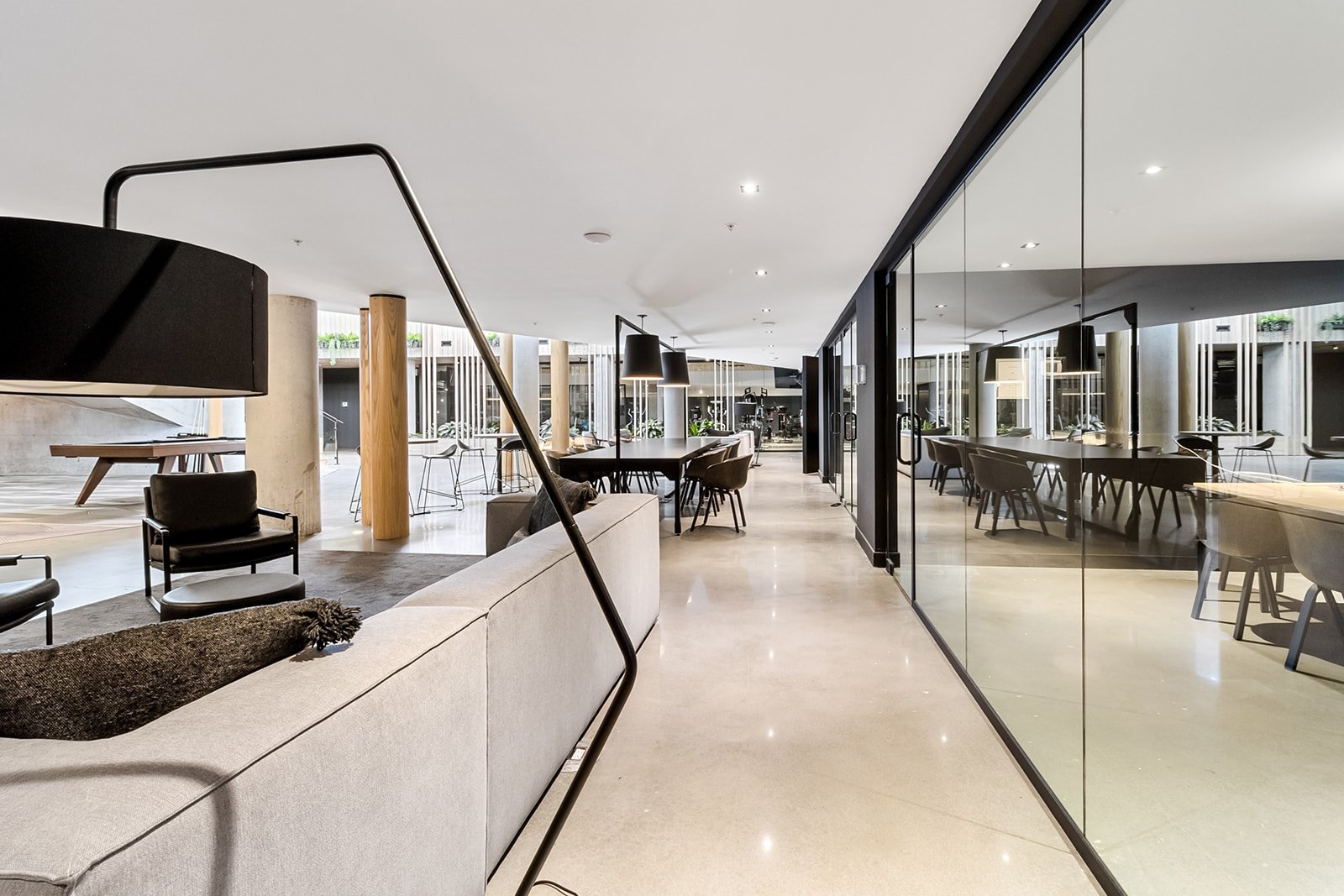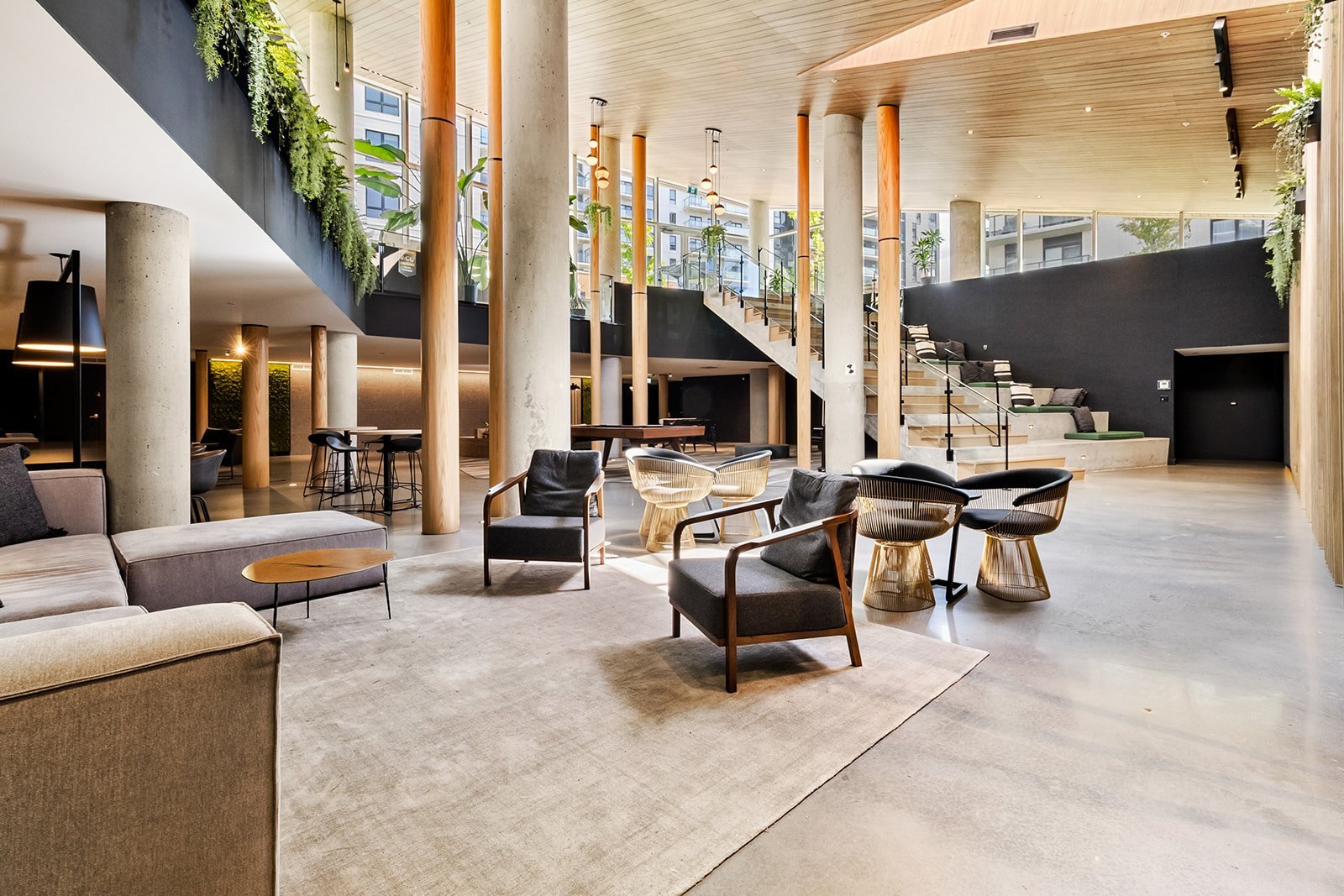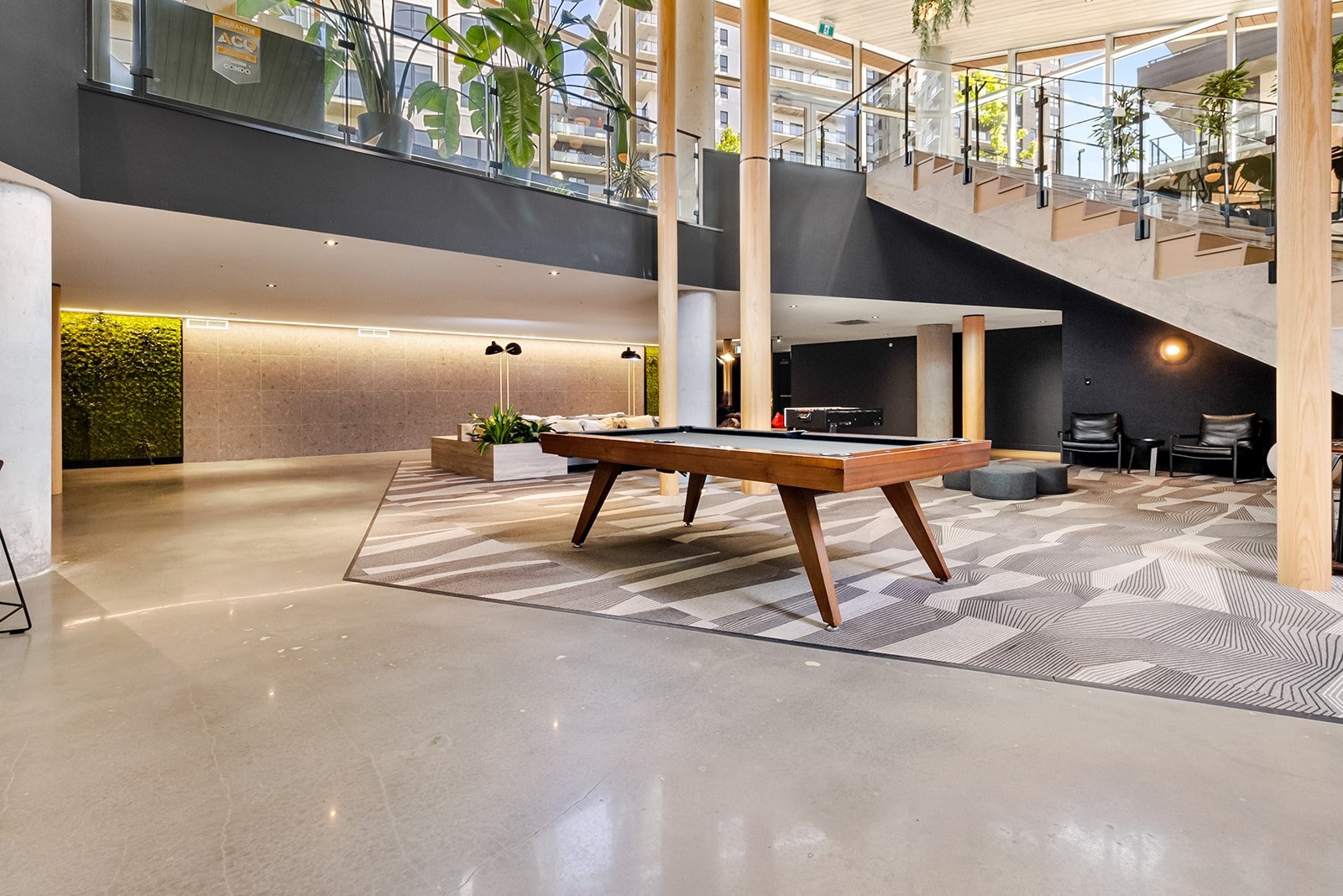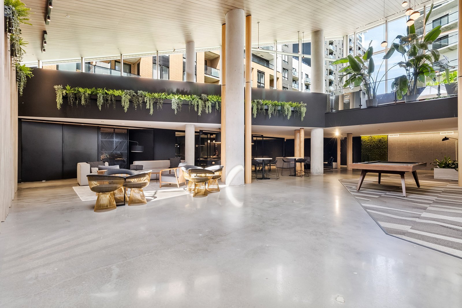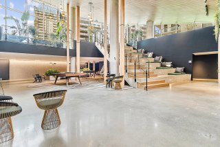 Les résidents de l'immeuble bénéficient d'un accès à des installations communes de grande qualité, offrant un style de vie comparable à celui d'un complexe résidentiel moderne. Ces installations incluent notamment une piscine, une terrasse aménagée, une piste de bowling, une salle de cinéma, un espace de bureau, une salle d'exercices, ainsi que plusieurs autres aires communes, favorisant autant la détente que la vie sociale.